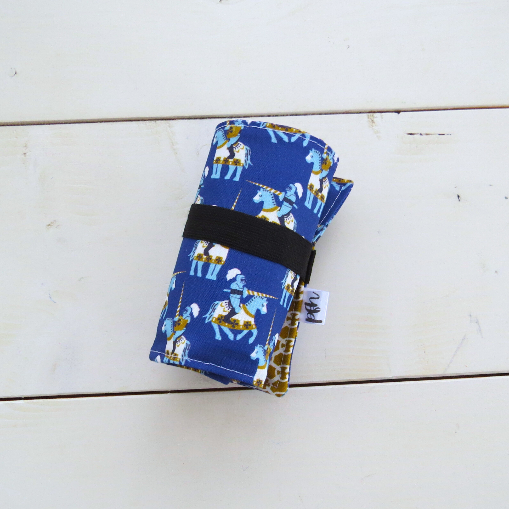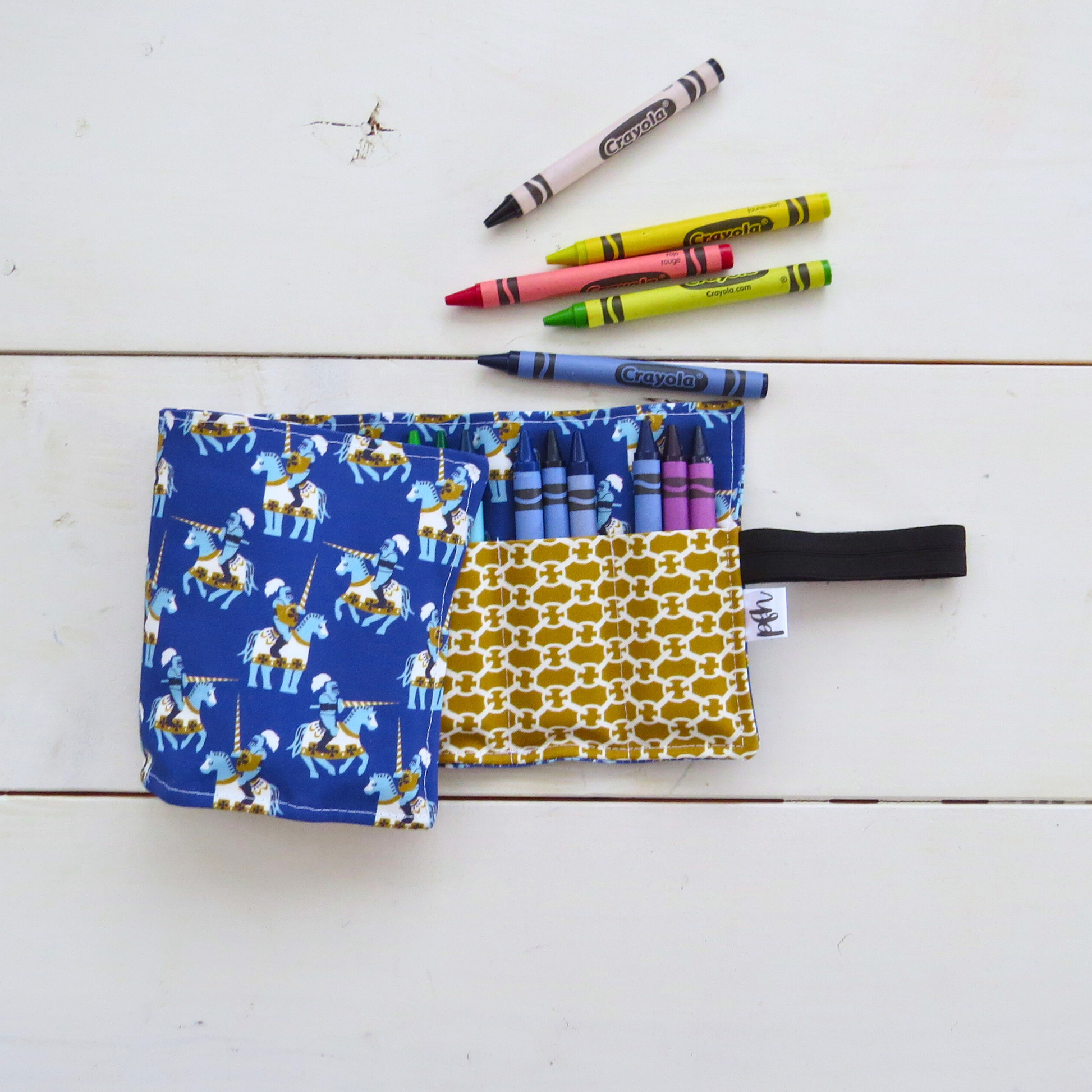 Made from high-quality designer fabric this roll-up features individual slots to hold each crayon securely. Simply roll it up and tie it closed for easy storage and portability. Available in a variety of fun patterns and colors, this crayon holder is perfect for young artists of all ages!
