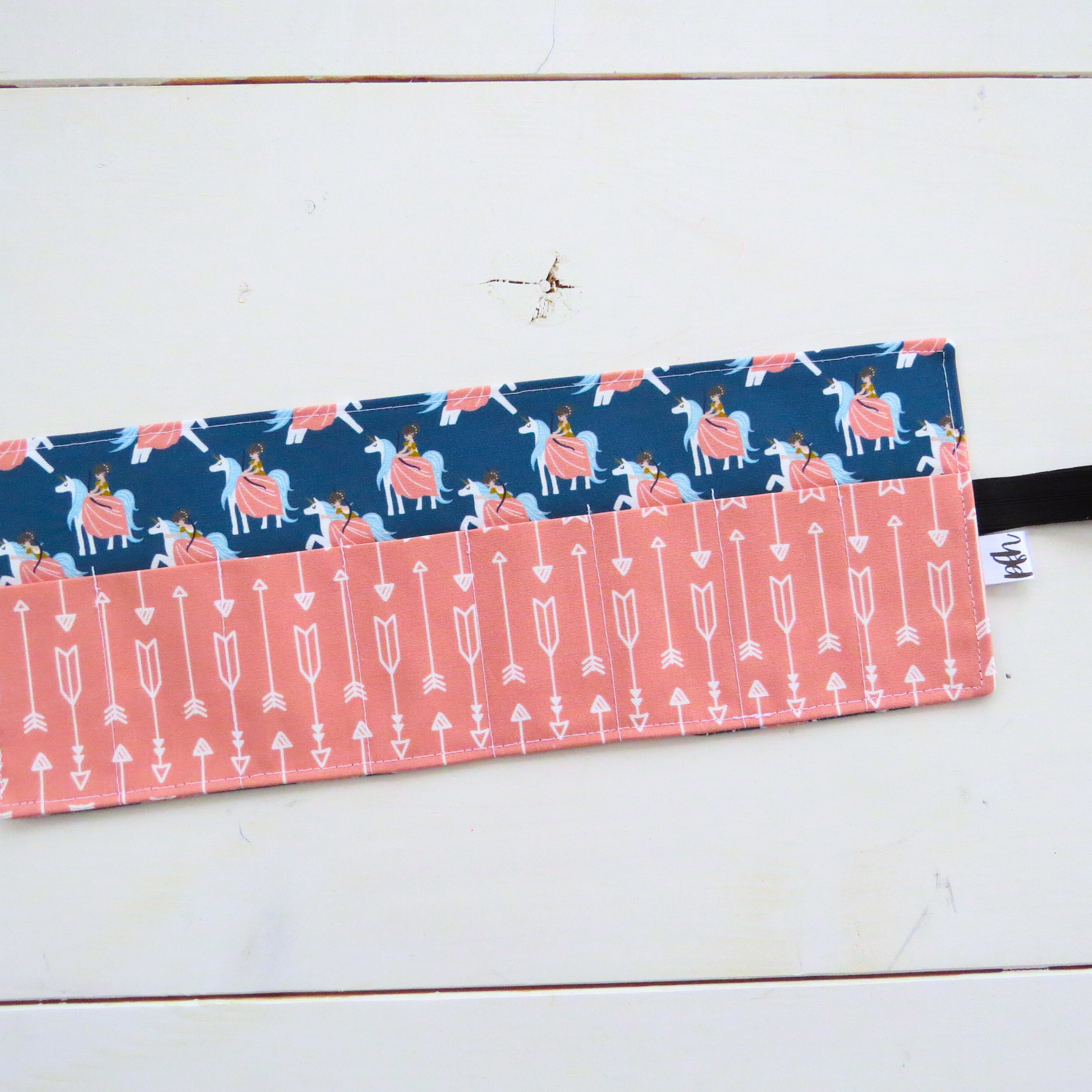 Made from high-quality designer fabric this roll-up features individual slots to hold each crayon securely. Simply roll it up and tie it closed for easy storage and portability. Available in a variety of fun patterns and colors, this crayon holder is perfect for young artists of all ages!