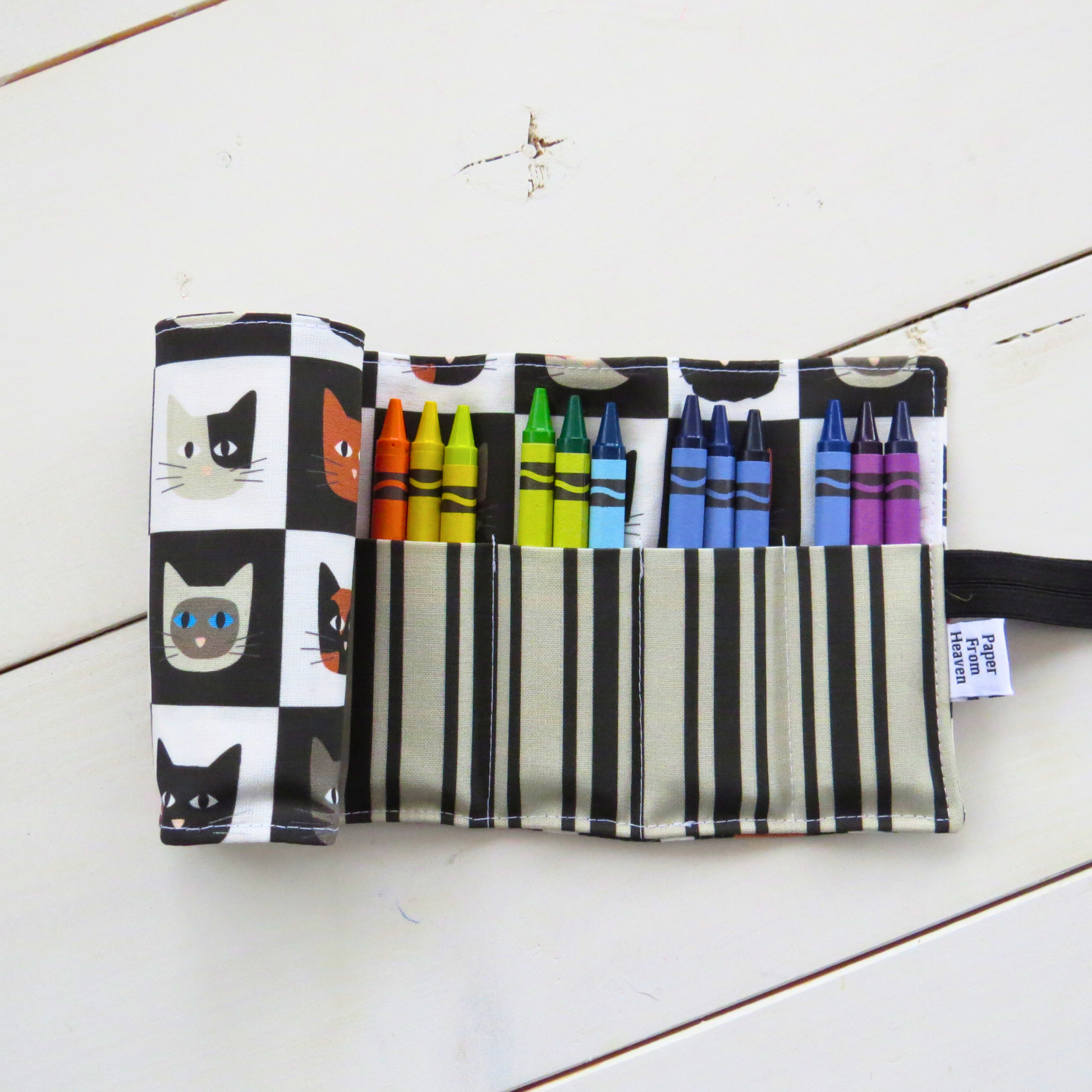 Made from high-quality designer fabric this roll-up features individual slots to hold each crayon securely. Simply roll it up and tie it closed for easy storage and portability. Available in a variety of fun patterns and colors, this crayon holder is perfect for young artists of all ages!